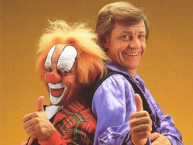 Voor wie het niet weet Bassie is de clown en Adriaan is de man ernaast.